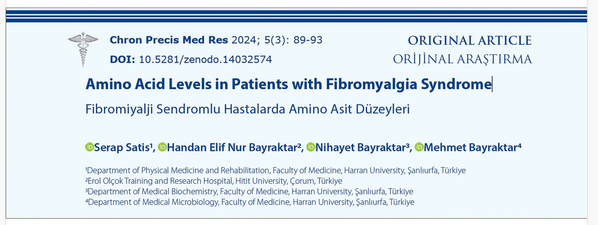Amino acid levels in patients with fibromyalgia syndrome (Harran University Istanbul, 2024)