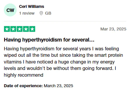 I'm glad I came across Smart Protein and would highly recommend it to anyone with an underactive thyroid.