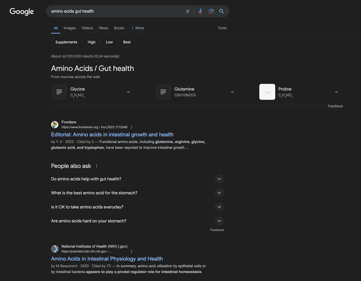 And it's no surprise: a quick Google search shows that amino acids can improve gut health.