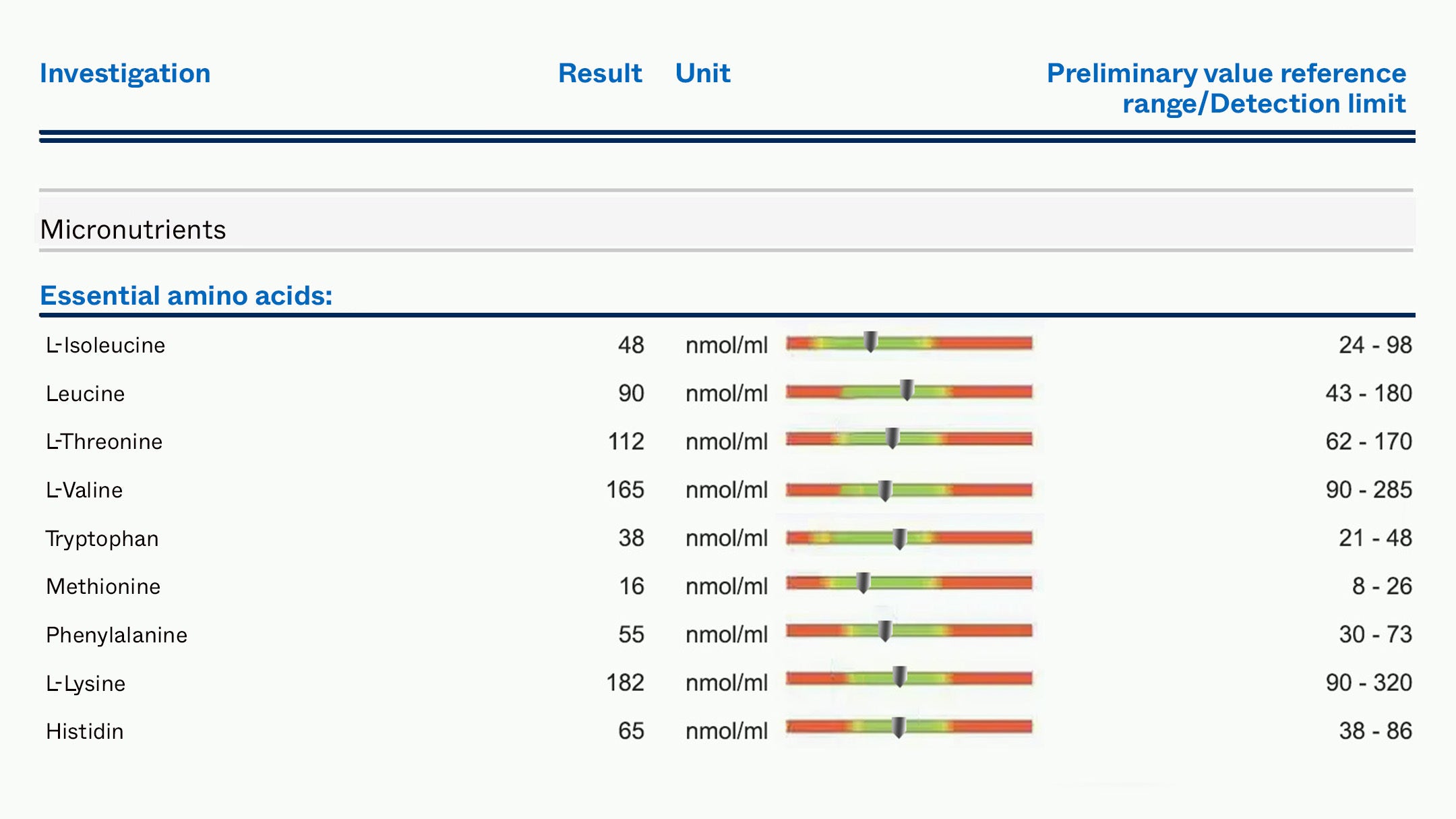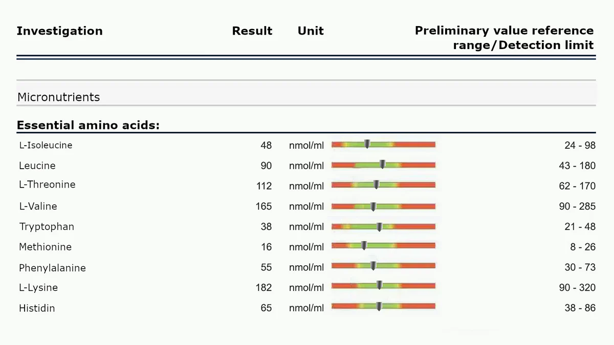 Only a few amino acids were in the green zone, despite the fact that I had reintroduced eggs and fish into my diet for the last two months - irregularly, but still.